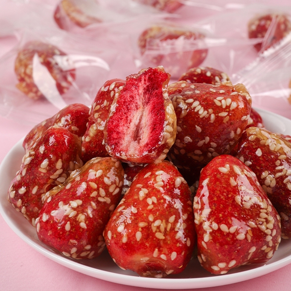 冰糖草莓是一種美味的零食。它們的顏色紅艷、酸甜適中,口感脆爽