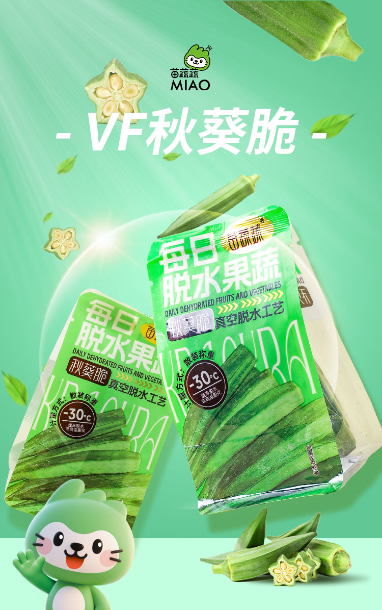 苗蔬蔬手抓包秋葵脆果蔬脆片廠家生產(chǎn)散裝稱重代理批發(fā)代加工出口
